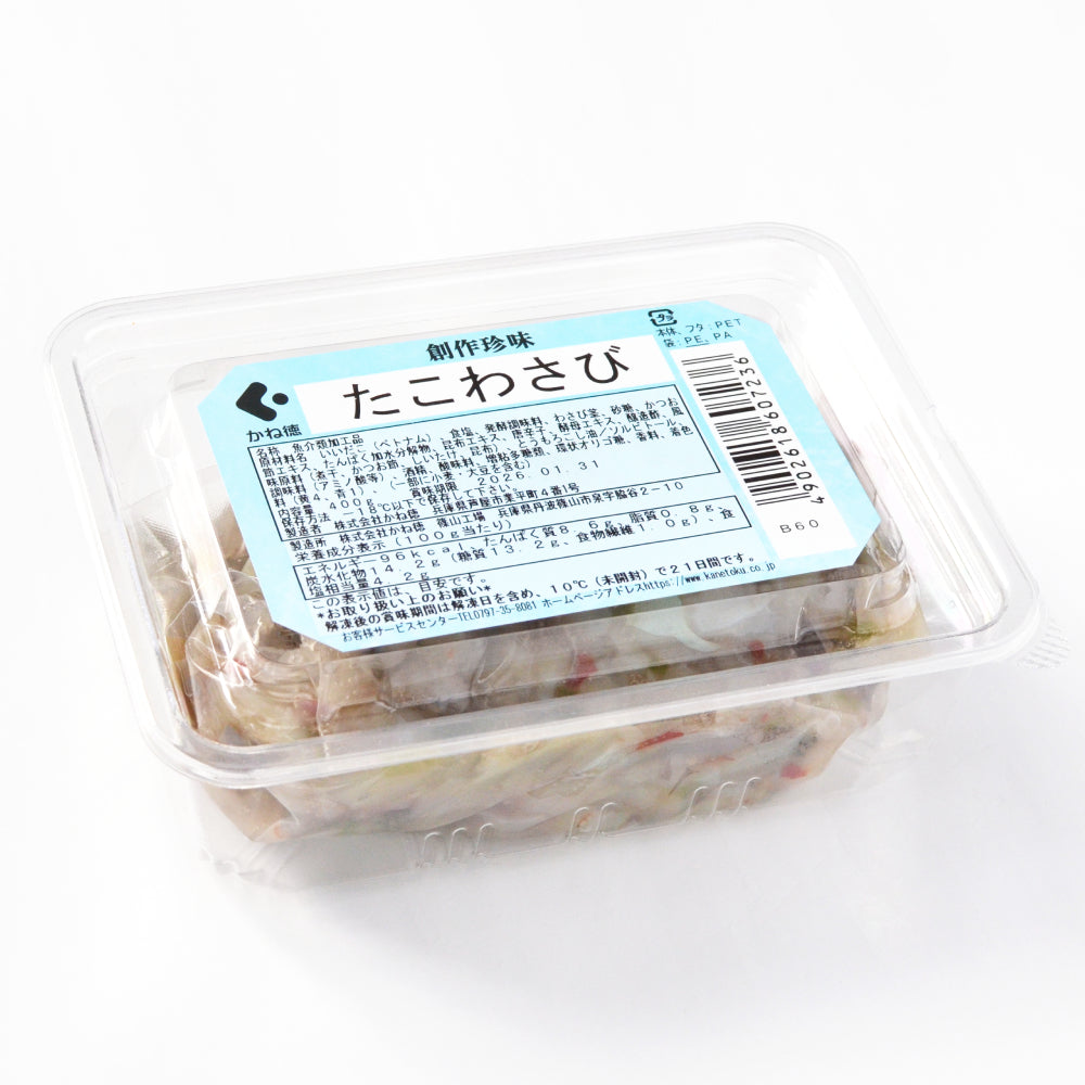 生だこのコリコリ感とわさび茎のシャキシャキ食感がくせになる、王道の珍味です。